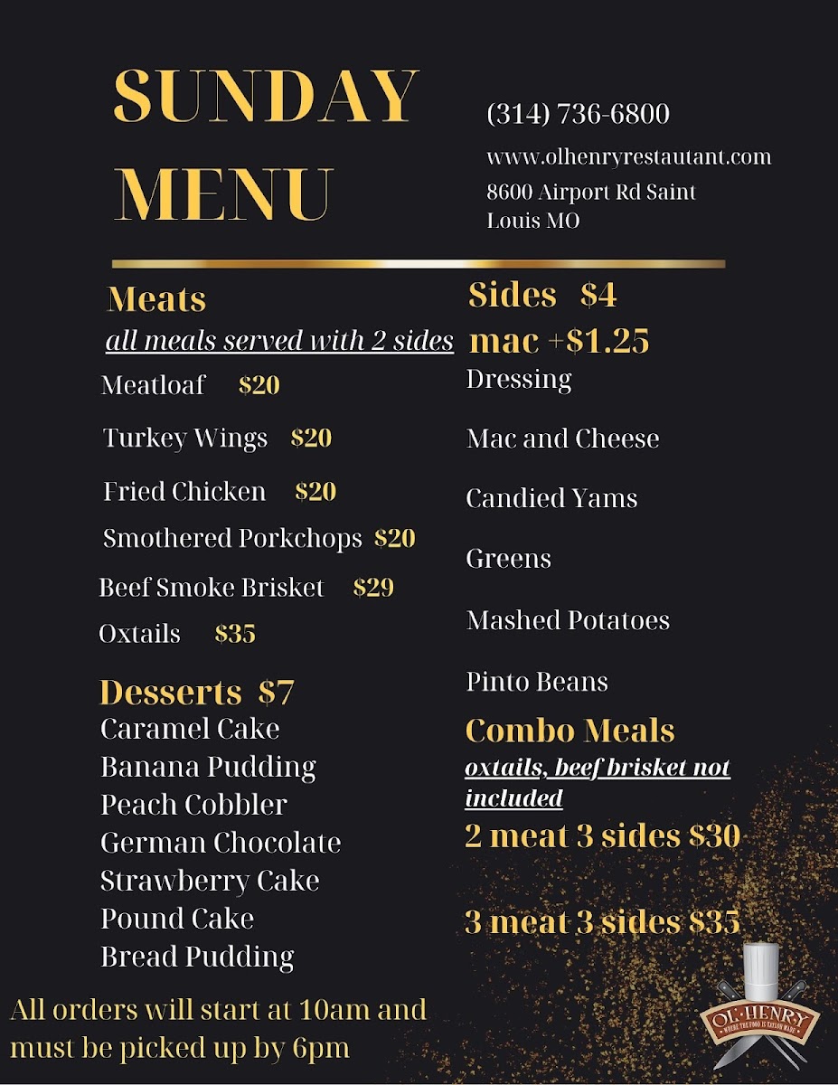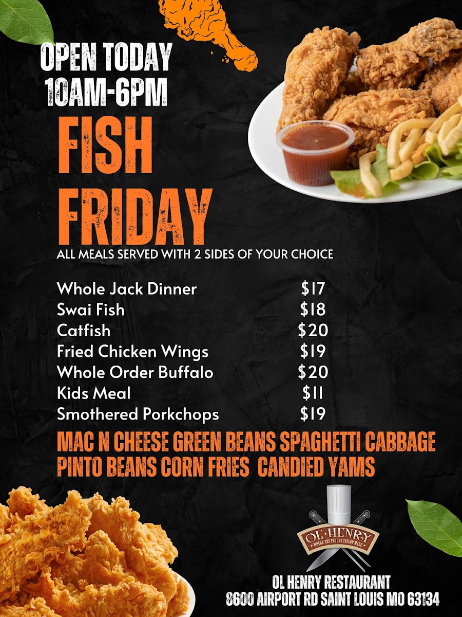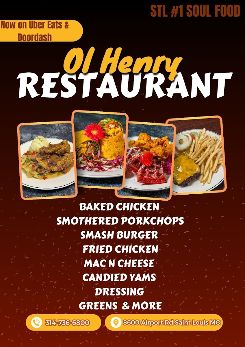 When you step into Ol' Henry Restaurant, you're greeted not just by the cozy ambiance but also by a menu that promises comfort and flavor in every bite. Located at 8600 Airport Rd, St. Louis, MO, this place has something for everyone, from classic comfort food to unique twists on beloved dishes. Whether you're in the mood for a juicy steak, some southern-style fried chicken, or a hearty vegetarian option, you’ll find a variety of choices that’ll have you coming back for more.